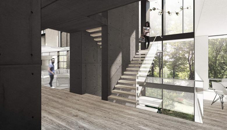 Guests are guided to the entry through a central treed courtyard, which uses lush native plantings to focus the core of the house to the inner beauty of the site. Living and sleeping spaces enjoy an added veil of privacy from a curtain of existing mature planting, dissolving indoor/outdoor boundaries with composed views to their immediate landscape. Roof extensions and light shelves create clear definition between vertical spaces. Exterior materials are meant to weather over time to match the surroundings.