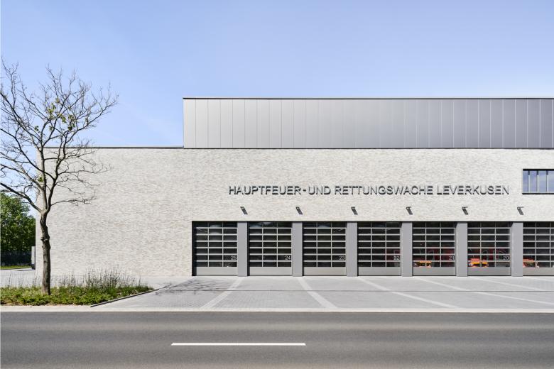 Die neue Hauptfeuer- und Rettungswache verleiht dem sonst landwirtschaftlich geprägten Randbereich der Stadt Leverkusen eine neue städtebauliche Orientierungsmarke (oder einen neuen Akzent). Gleichzeitig wird durch Lage und baulicher Präsenz die Bedeutung der Nutzung für die Stadtgesellschaft verdeutlicht. Der langgestreckte Baukörper bildet die Funktionen zur Straße deutlich ab: 20 Feuerwehrfahrzeuge sind sichtbar, darüber verschieben sich Bürobereiche und Technik. Der H-Grundriss ermöglicht in der Tiefe eine Optimierung der vielfältigen Funktionsbereiche und schafft darüber hinaus einen geschützten Arbeitshof mit Feuerwehrübungsflächen. Die Verschränkung aller Funktionen wird durch ihre Ausbildung in hellen Ziegel- und Metallkuben deutlich, so dass eine ausgewogene architektonische Komposition entsteht. Das Eingangsfoyer erhält durch das raumhohe fotografische Kunstwerk ‚München 2009‘ von Elmar Schossig eine zusätzliche emotionale Dimension.
