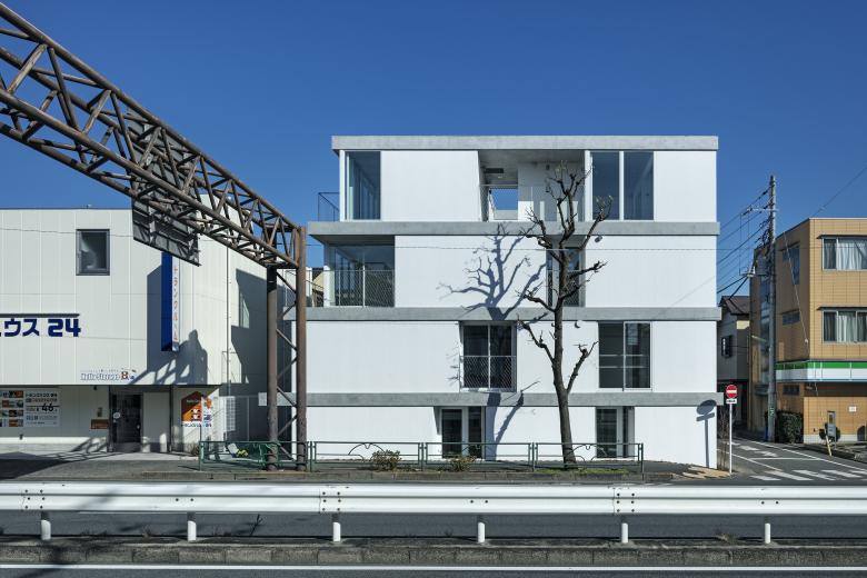 都心の幹線道路沿いに建つ19戸の集合住宅の計画。
