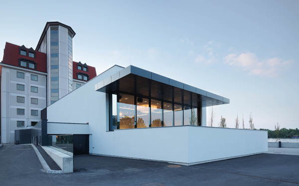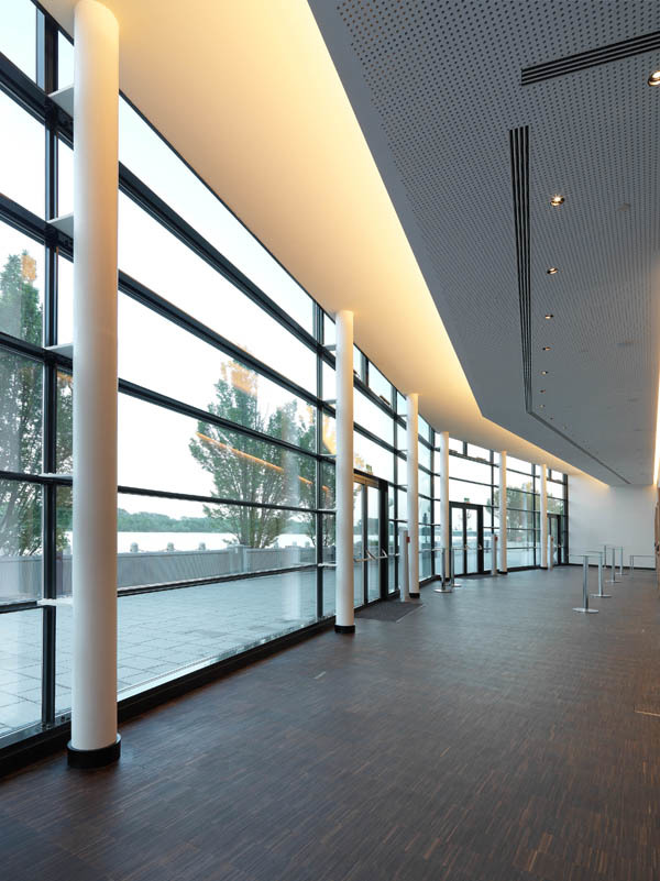Durch strukturelle räumliche Verbesserungen der Eingangssituation und des Konferenzbereiches konnte das bestehende Hotel mit 367 Zimmern im ehemaligen Getreidespeicher massiv aufgewertet werden. Das Entfernen einer Zwischendecke im Entree schafft einen attraktiven Durchblick zur Donau. Die dadurch entstandene Höhe von neun Metern in der Cafébar macht den Raum weit und groß. Der Zubau eines Konferenzbereiches mit großzügigem Waterfront-Foyer ist die Fortsetzung des neuen, klaren und übersichtlichen Raumkonzeptes. Insgesamt eignet sich nun das Hilton für Veranstaltungen aller Art mit bis zu 1500 Teilnehmern.