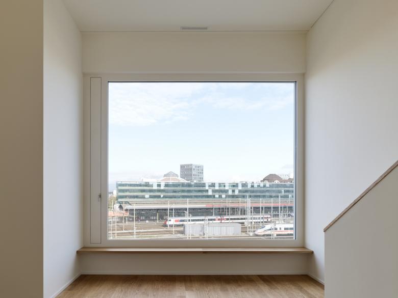 With a ceiling height of more than four meters in some of these apartments, the main theme features the wide view across the track area of the SBB railway station. The total of sixteen apartments will be offered for rent to tenants by the building client. With 2.5 to 4.5 rooms, these rental apartments range from 60m2 to 130 m2 in size. The ground floor will be reserved for commercial or gastronomical use. As permitted by respective zoning, the building includes a total of five stories plus an additional attic level. Construction work including the demolition of the Beschle bakery will begin in summer 2015 and the apartments will be ready to rent by the beginning of 2019.