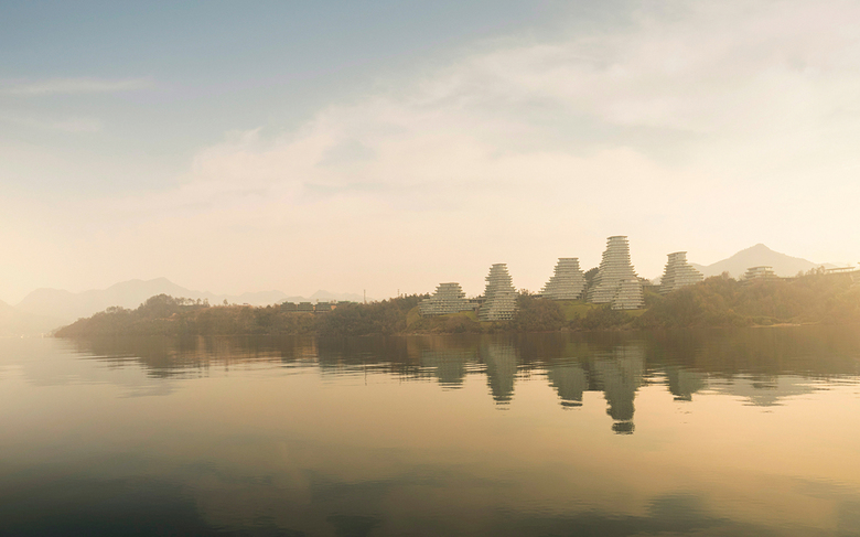 MAD’s scheme is part of a larger tourism masterplan for Huangshan Taiping Lake. While providing the conveniences of modern living, the design affirms the significance of this culturally important mountain range. Composed in deference to the local topography, each of the buildings are diverse in height and appearance, and have been conceived to ensure that the original mountain levels are maintained. Organized in a link configuration across the southern slope of Taiping Lake, the dynamic relationship that is created among the ten buildings establishes a new type of village landscape: one where architecture becomes nature, and nature dissolves into architecture.
