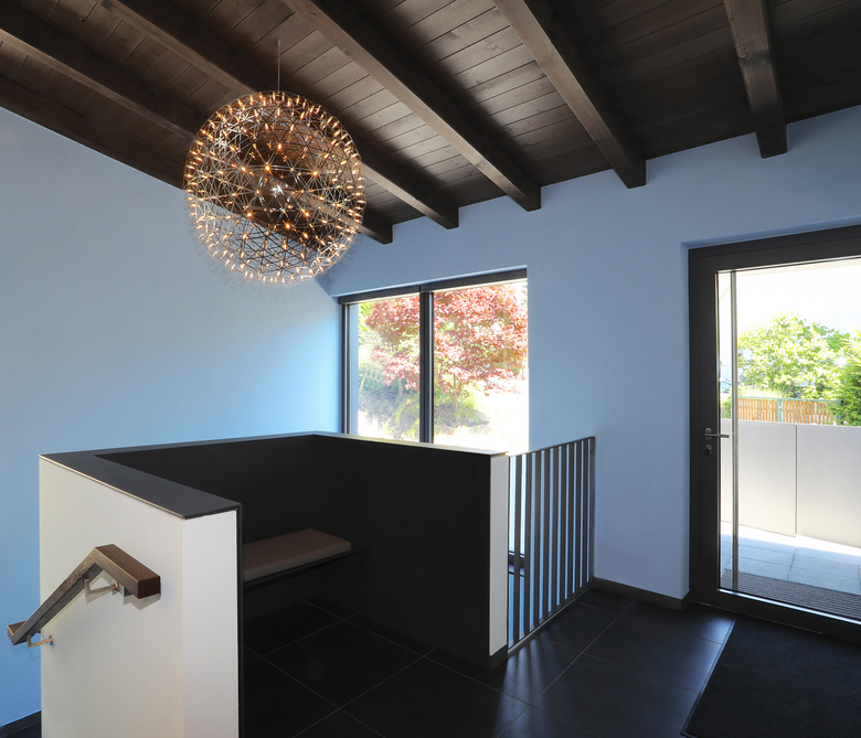 Diese wesentlichen Werte finden Ihre Entsprechung in einer offenen, transparenten Raumgestaltung nach innen und nach außen. Wertige, zurückhaltende Materialien unterstreichen die Solidität und den Anspruch des Unternehmens und fügen sich stimmig in das historische Gebäude ein. Die CI-Farbtöne Blau und Weiß beleben und dynamisieren zudem die gesamte Raumgestaltung.