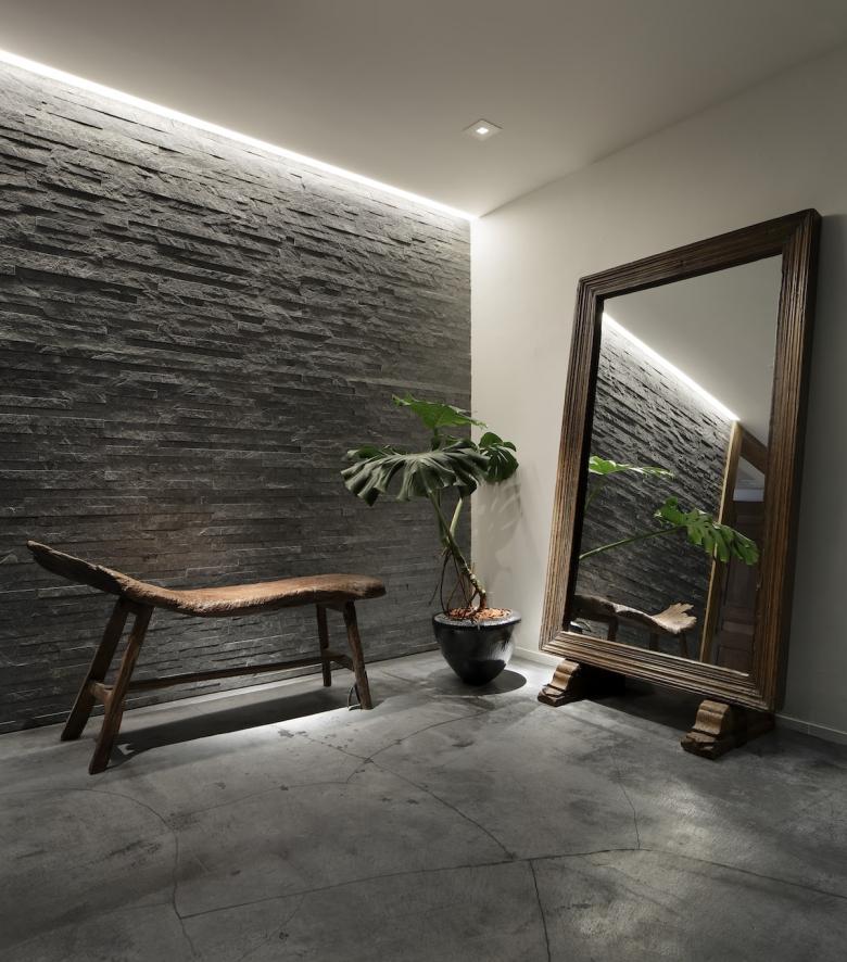 大使館や邸宅の点在する南麻布にある、海外で長く生活をされてきたオーナーのライフスタイルに相応しい、「人を招き、もてなす住まい」。祖母が幼少の頃使用したルイ・ヴィトンのトランクや父が赴任先で買い求めたケニアのアートなどを取り入れることを前提に、モノトーンを基調としたインターナショナルなギャラリーのような邸宅をデザインしました。