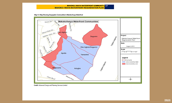 - Makoko-Iwaya Waterfront communities | SERAC, Lagos | Urban Spaces Innovation, Lagos | Heinrich Böll Stiftung Nigeria | Fabulous Urban, Lagos/Zürich | Center for Understanding Sustainable Practice (CUSP), Aberdeen | Advanced Design & Planning Services, Lag