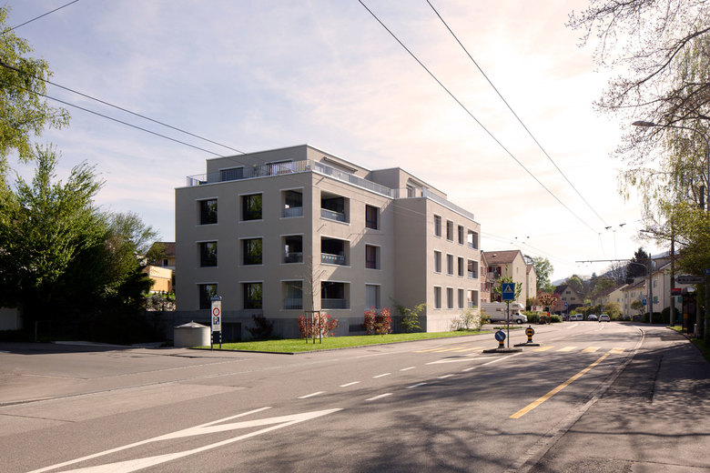 Das Grundstück des Mehrfamilienhauses liegt an der Strassenkreuzung Kräzern- und Bildweiherstrasse. Der Neubau fügt sich als dreiflügeliger Punktbau in die Umgebung ein und verfügt über zwölf Wohneinheiten und einer Einstellhalle mit zwölf Autoabstellplätzen. Die geplanten Wohnungen sind grosszügig ausgestattet, mit hohen Räumen, viel Fensteranteil, offenen Küchen und geschützten Loggien, sowie grossen Terrassen im Attikageschoss. Die Wohnungen sind mehrseitig orientiert und gewähren Aussichten in verschiedene Richtungen. Alle Wohnungen verfügen über zwei Nasszellen und ein separates Kellerabteil im Sockelgeschoss. Die Mietwohnungen sind familienfreundlich, sowie für Paare und Singles ausgerichtet, umgeben mit Grünfläche und Spielplatz. Das Mehrfamilienhaus liegt in der Nähe der Bushaltestelle und verschiedenen Einkaufsmöglichkeiten. Das kompakte Gebäude wird als Massivbau mit einem Einsteinmauerwerk erstellt, das unbeheizte Sockelgeschoss in Sichtbeton ausgeführt. Die Fenster sind aus Holz-Metallfenster, in den Loggias raumhoch, mit Klarglas geplant. Ein Kämpfer erlaubt ein liegendes Gals bis auf die Höhe der Absturzsicherung mindestens ein Dreh-/Kippflügel ermöglicht eine natürliche Belüftung. Die ganze Wohnung ist mit Eichenparkettböden ausgeführt, Nasszellen mit Keramikplatten; Terrasseflächen mit Zementplatten. Eine hochwertige Materialisierung lassen tiefe Unterhaltskosten erwarten.