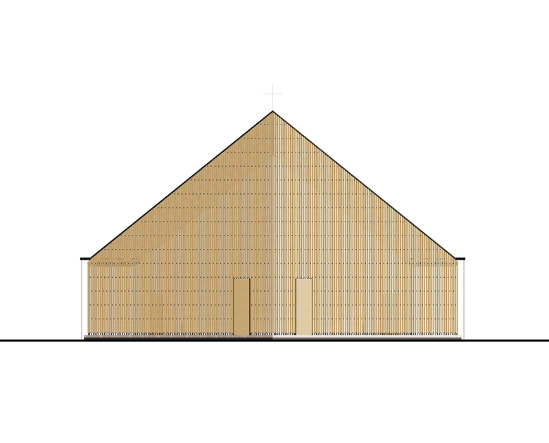 “Light” is an important theme in the religious expressions of church space. In this particular design, light falls through the strip skylight right above the axis of alter into the center of the hall, and also penetrate from behind the holy cross on the alter wall. The presentation of this 300 mm wide light strip is the most powerful defining element of the interior space. Other natural light comes gently through the wood strips into the openings on the wall.