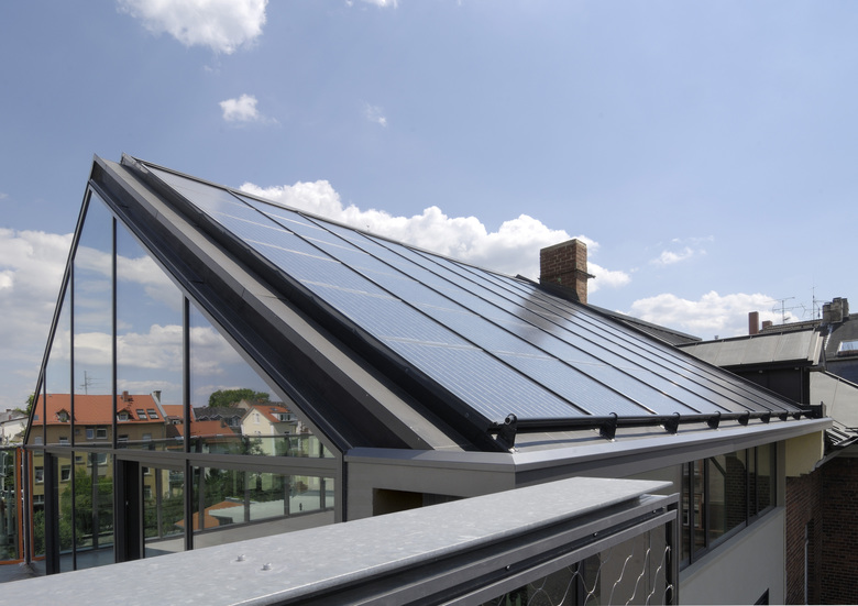Typisch gründerzeitliche, dreigeschossige Bebauung prägt die Ploenniesstraße im Darmstädter Martinsviertel. Hier wurde ein bestehendes Wohnhaus umgebaut und erweitert sowie ein neues Bürogebäude in der angrenzenden, größtenteils versiegelten Baulücke errichtet. Die Aufstockung der beiden Geschosse des bestehenden Wohnhauses nimmt dabei die Fassadengliederung der Nachbarbebauung auf. Die nachempfundenen, in der Gründerzeit typischen, applizierten Ornamente wirken authentisch und erwecken den Eindruck, als sei das Gebäude schon immer dreigeschossig gewesen. Nur das umlaufende Glasband unter der Traufe zeigt an, dass hier ein größerer Eingriff stattgefunden hat. Erschließung und Aufteilung des Altbaus wurde im Rahmen der Erweiterung und im Zusammenhang mit dem Neubau komplett umstrukturiert. Zwei Maisonettwohnungen treten an die Stelle der Geschosswohnungen. Der Zugang zu beiden Häusern erfolgt über das Treppenhaus des Neubaus, das auch die innere Erschließung des Altbaus ersetzt. Das neue Bürohaus, dessen Volumen sich an der Nachbarbebauung orientiert, setzt sich mit seiner glatten Glasfassade bewusst vom Bestand ab. Die geschosshohen Glaselemente bilden im oberen Teil die Brüstung der Dachterrasse. Der Umbau wurde als Niedrigenergiehaus konzipiert, der Neubau als Passivhaus errichtet: Alle Glasfassaden und Fenster erhielten eine Dreifach-Verglasung. Jedes Geschoss hat eine separat regulierbare kontrollierte Be- und Entlüftung mit Wärmerückgewinnung. Auf dem Dach befinden sich Solarthermie- und Fotovoltaikelemente. Abgehängte Decken in den Wohnräumen ermöglichten den Verzicht auf störende Heizkörper; die Düsen für Zu- und Abluft wurden unauffällig in die Verkleidungen integriert. Eine Zisterne dient der Brauchwassernutzung.