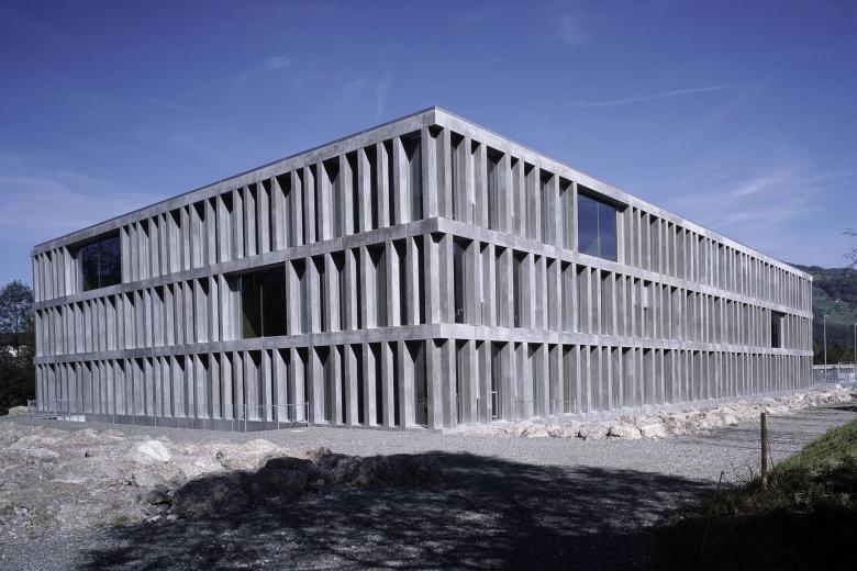 Ein gedrungener und kompakter Baukörper besetzt die Mitte eines dreiarmigen Freiraums. Mit der Nähe und mit Bezug zur orthogonalen Raumordnung der Berufsschule wird sie Teil eines gewachsenen Ensembles. Das Eingangsgeschoss enthält alle gemeinsam nutzbaren Räume, den grossen Hörsaal, die Cafeteria, das Informationszentrum, die Schulleitung. Die Obergeschosse dienen der Fachausbildung und enthalten Seminar-/ Gruppenräume und Einzelarbeitsplätze. Im Sockelgeschoss finden sich die mehr handwerklich orientierten Spezialzimmer. Ein schmaler Lichthof verbindet die Geschosse räumlich. Klare Strukturen erlauben ein nachhaltig bewirtschaftbares gebäudetechnisches Konzept.