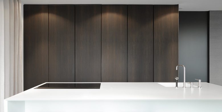 Bereits während der ersten Bauphase trat unser Kunde an uns heran. Sein Wunsch war es, zwei Wohnungen zu einem grossen Penthouse mit Pool auf der Dachterrasse zusammenzuführen. Das Ziel war es, ein modernes, warmes und in sich stimmiges Konzept zu gestalten. Zusammen definierten wir Materialien wie Marmor, Corian-Oberflächen und handgefertigte Tapeten.