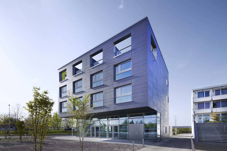 Das Gebäude wurde in Ingolstadt Ende 2012 mit vier Split-Level Wohnungen, Dachterrasse und einer Gewerbeeinheit fertiggestellt. Es markiert am nordwestlichen Rand von Ingolstadt den Eingang zu dem Siedlungsfeld „Permoserstraße“, in dem in den letzten zwei Jahrzehnten eine Vielzahl an experimentellen, kostengünstigen Wohnungsbauten errichtet wurden. 2001 wurde dort ein Gebaeude von BLAUWERK im Nachwuchswettbewerb EUROPAN 6 prämiert und realisiert. Der Bauherr bat die Architekten im Anschluss, den Quartiersrand an der stark befahrenen Richard-Wagner-Straße mit drei weiteren Bauwerken zu definieren. Das nun fertig gestellte Gebäude bietet als Eckpunkt des Ensembles im Erdgeschoss eine Gewerbenutzung oder eine Gastronomie an. Mit seiner Auskragung nach Sueden erzeugt es hierfür einen geschützten Platzbereich. Der einfache Baukörper weist im Inneren eine komplexe Struktur auf. Die Split-Level-Wohnungen sind uueber der teils zweigeschossigen Gewerbeeinheit angeordnet. Die privateren Räume liegen in den unteren Ebenen, Wohnraum, Küche und private Freifläche sind in den oberen Ebenen angeordnet. Der Wohnbereich ist eineinhalb Geschosse hoch und orientiert sich nach Norden mit Blick auf die freie Landschaft. Über die Dachterrasse fällt Südlicht tief ins Gebäudeinnere. Barrierefreie Wohnungen werden in den angrenzenden Gebaeuden angeboten. Besonderer Wert wurde auf die Belichtung der internen Wohnungstreppen mit Oberlichtern und teilverglasten Türelementen gelegt. Um möglichst wenig Platz zu verbrauchen wurden die Seitenwangen der Treppe als tragende Geländer aus Stahlplatten hergestellt. Die Fassade besteht aus kostengünstigen, vorgehängten Zementfaserplatten. In diese sind Lichtfelder eingelassen, die nachts zusammen mit den Fenstern ein wechselndes Bild des Gebäudes an dieser markanten Stelle ergeben.