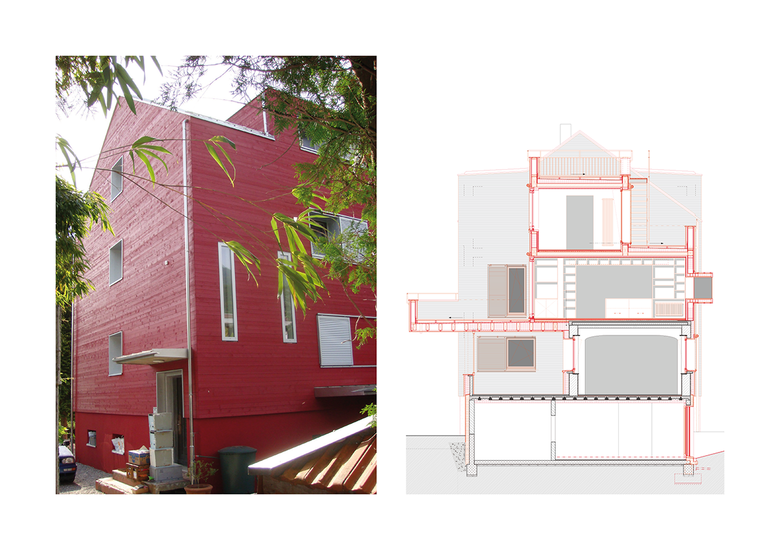 Die neue Holzverkleidung in kräftigem Rot fasst Alt und