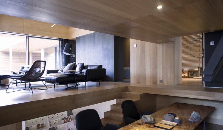 该项目是在原有别墅基础上改建的建筑师自宅。 原建筑地下一层,地上两层,坐落在被相同房型环抱的社区之中。这是一个独立的住宅,除了一家人的居住,内部还有两间用于创作的工作室。此住宅试图在现代都市中创造出一片独立的世界以获得内心的安定与自由,并通过实木与金属材质的构建表达建筑与自然的真实性。同时,也试图将建筑的功能性与舒适性高度统一起来。
