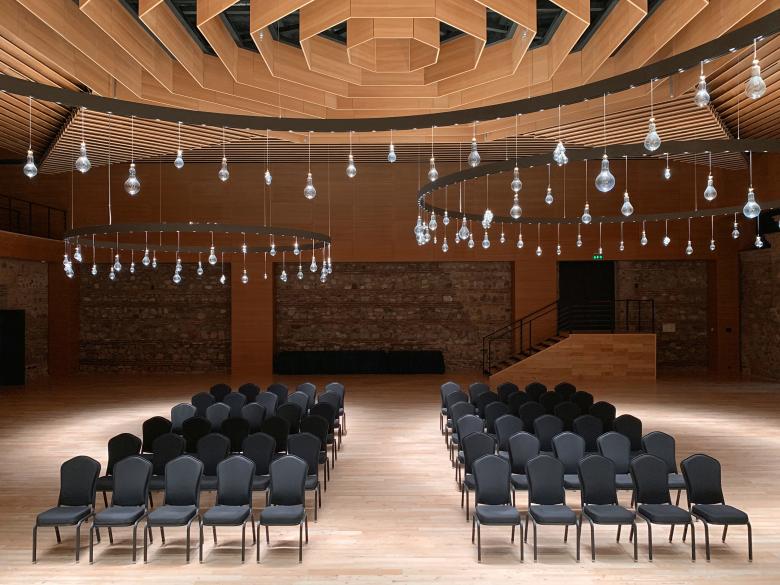 Für das Radisson Collection Hotel in Tsinandali Estate gestaltete Ingo Maurer und Team Innenräume wie Restaurant, Ballroom, Frühstücksraum sowie den Innenhof mit Brunnen. Die Räume wurden mit Sonderanfertigunen und Modellen aus der Collection beleuchtet. Tsinadali ist ein über 200 Jahre altes Weingut, etwa zwei Stunden von Tiflis im Herzen des Weinanbaugebiets Kachetien.