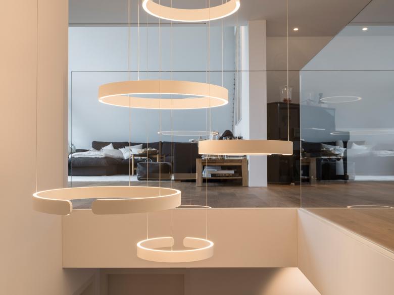 Zeitgemässer Wohnkompfort auf mehreren Etagen, grosszügige Garten- und Terrassenflächen sowie ein absolutes "Highlight": Die geschwungende Treppe, die von den unteren Räumen in das neu erschlossene Wohngeschoss des Hauses führt, sorgt für eine moderne Atmosphäre. Die Wohnräume zeichnen sich insbesondere durch die hohen Decken aus.