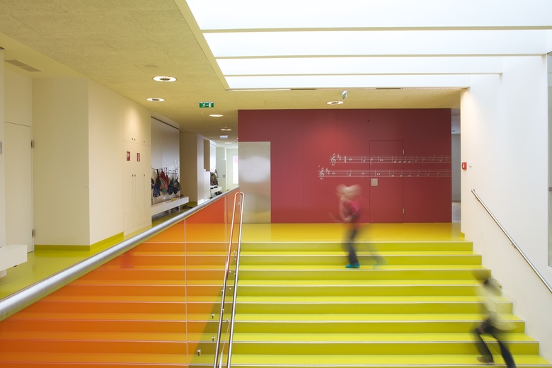 Mit dem Neubau wurde ein modernes Schulhaus auf höchstem technischem Niveau geschaffen, das die Kinder in ihrem Lern- und Entwicklungsprozess optimal fördert und ein freies und flexibles Arbeiten für Schüler und Lehrer ermöglicht.