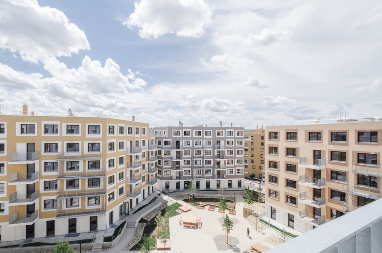 Insgesamt entspricht dieses nutzungsdurchmischte Baufeld mit fünf Häusern den zukunftsweisenden Zielen der Stadtentwicklung in Aspern.