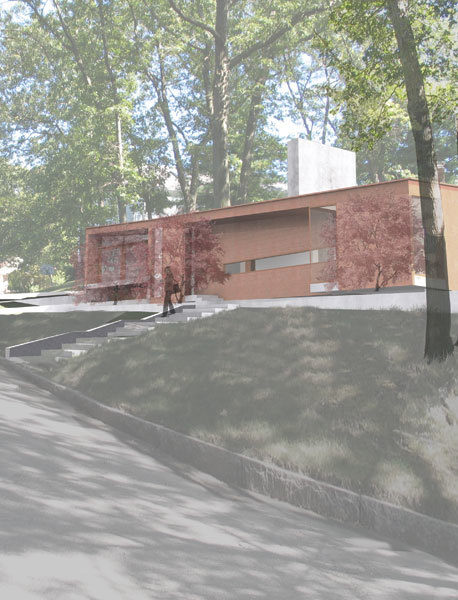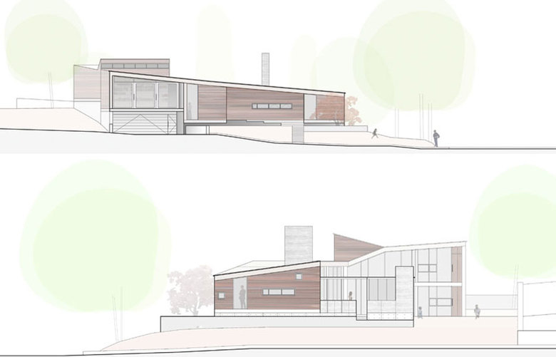 A suburban lot with tight setbacks and a marked slope offers a unique opportunity to create this residence for a young Mediterranean family. Our clients characterized themselves as “phototropic”; hence the project is designed to maximize northern light and southern solar gain. The volume enclosing entry lobby, library, living-dining, and kitchen creates an urban edge on the tree-lined street. More private areas such as the bedrooms and family room are situated around an atrium and garden. The house is clad in a naturally weathering copper skin, stretched over a cast-in place concrete structure. Ample insulated glazing reveals precise street views and opens the public rooms to the garden.