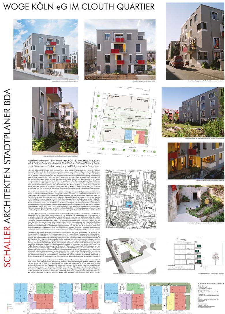 Nach der Stilllegung erwarb die Stadt Köln das 14,5 Hektar große Firmengelände der rheinischen Gummiwarenfabrik Clouth mit der Zielsetzung in der zentrumsnahen Lage, mitten in Nippes zwischen Stadtteilzentrum im Westen und einem Parkgelände im Osten ein neues wertvolles Stadtquartier aus der Industriebrache zu machen. Wichtiger Bestandteil des Konzeptes war neben einer gemischten Nutzung die Förderung neuer urbaner Wohnmodelle. Dazu wurden Baufelder in Konzeptverfahren an Baugruppen vergeben. Mit drei weiteren Bewerbern konnte sich die Genossenschaft WoGe Köln eG mit dem Konzept für ein, selbstverwaltetes, soziales und ökologisches Wohnprojekt qualifizieren. Zur Zielsetzung gehörte, dass die Bewohner über das eigene Haus hinaus sich für den aktiven Austausch mit den Nachbarn und das Zusammenleben im Stadtteil einsetzen wollten. Für das Baufeld sah der Bebauungsplan in offener Bebauung an den Straßen Auf dem Stahlseil im Norden und Kautschukstraße im Süden für jeweils zwei Baugruppen 16 m tiefe Baufenster vor. Der Woge wurde der östliche Bereich des Baufensters an der Kautschukstraße zugewiesen.