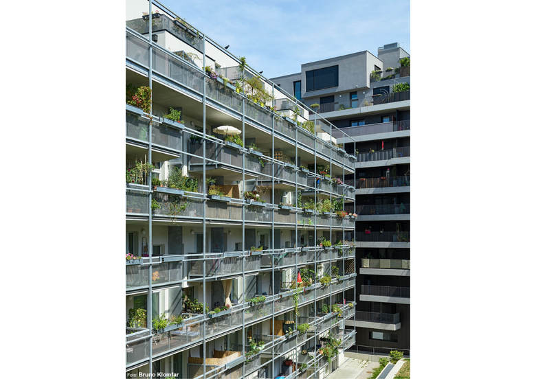 Wohnzimmer Sonnwendviertel – Das Projekt liegt im Entwicklungsbereich des Wiener Hauptbahnhofs. Es beherbergt in Summe 450 Wohnungen mit mehr als 3.000 m² Gemeinschaftseinrichtungen, von Kinderbetreuungsräumen über Kino, Bibliothek, Klettergarten bis zu einem ca. 1.000 m² großen Wellnesszentrum. Der “Läufer”, ein 3-dimensionales Wegenetz, verbindet die Wohnungen mit sämtlichen Einrichtungen, die gemeinsam mit der attraktiven, teilweise gebäudeintegrierten Landschaft das eigentliche “Wohnzimmer” des Quartiers bilden. Der stark ausgeprägte Variantenreichtum der Wohnungen adressiert eine Vielzahl an Nutzerwünschen und reicht von Smart-Appartments (3-Zimmer mit 55 m²) über Single-Lofts und Familienmaisonetten bis zu 360 m² großen Wohngemeinschaften.