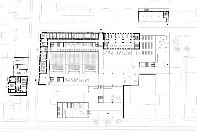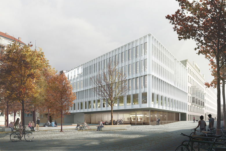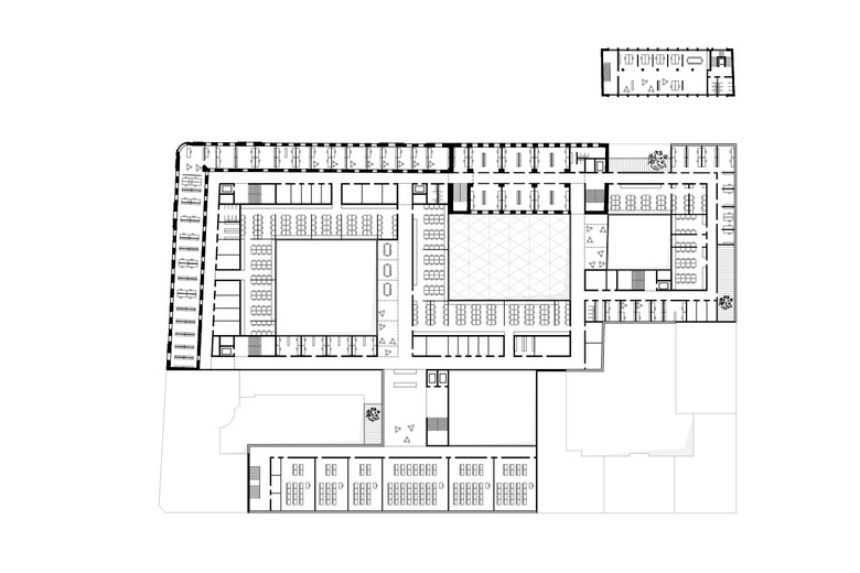 Aufbrechen & weiterbauen: fünf in sich verwobene Baukörper als ein präzises Implantat innerhalb der historischen Blockrandbebauung von Wien - perfekt integriert und bestmöglichst offen zur Stadt. Eine Rue Intérieur führt durch das ganze Gebäude, ein Verbund großzügiger, von Licht durchfluteten Raumfolgen mit Foyer, Aula und Mensa – die Vorplätze machen den Auftakt für sie und grüßen das Quartier! Der einstige Block wird entkernt und zu einem neuen Ensemble von Höfen mit verschiedensten Durch- und Einblicken geschachtelt: Lernhof, Ruhehof, Aula und für alle das Atrium, Treff- und Angelpunkt und Herz der Anlage.