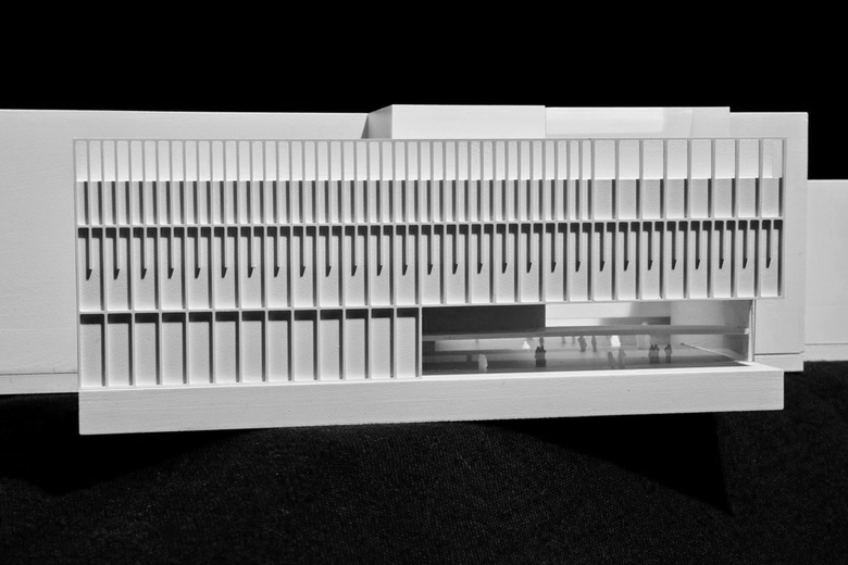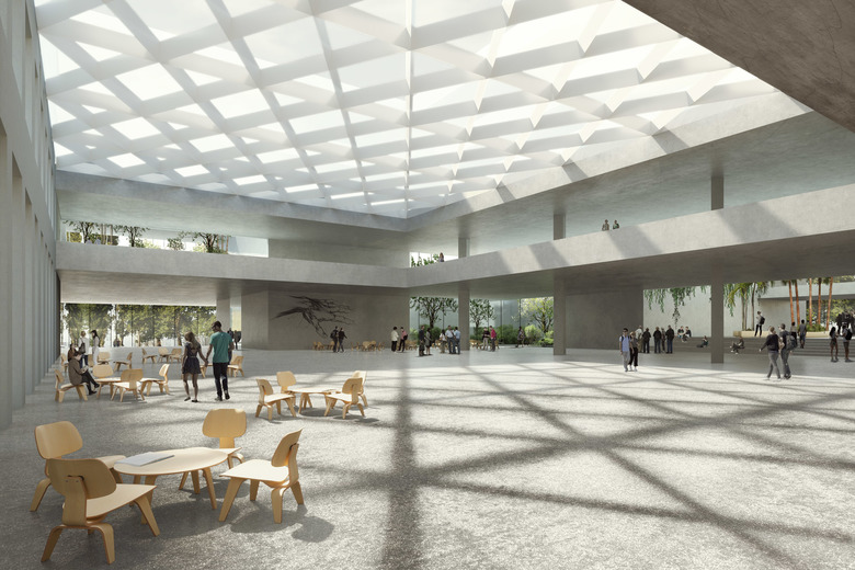 In der klar rhythmisierten Fassade sind die Funktionen der dahinterliegenden Geschosse ablesbar. Im Inneren findet man weitestgehend stützenfreie Räume mit einer hohen Flexibilität, perfekt für die heterogene und sich ständig ändernde Raumnutzung einer Universität. Der Komplex ist durchgehend auf einer klaren, orthogonalen Struktur, basierend auf dem 1,20 Meter - Modulraster aufgebaut. Die Decken überspannen in Querrichtung mittels Unterzügen die Traktbreite, um möglichst große zusammenhängende – und damit flexibel unterteilbare – Nutzungseinheiten zu ermöglichen.