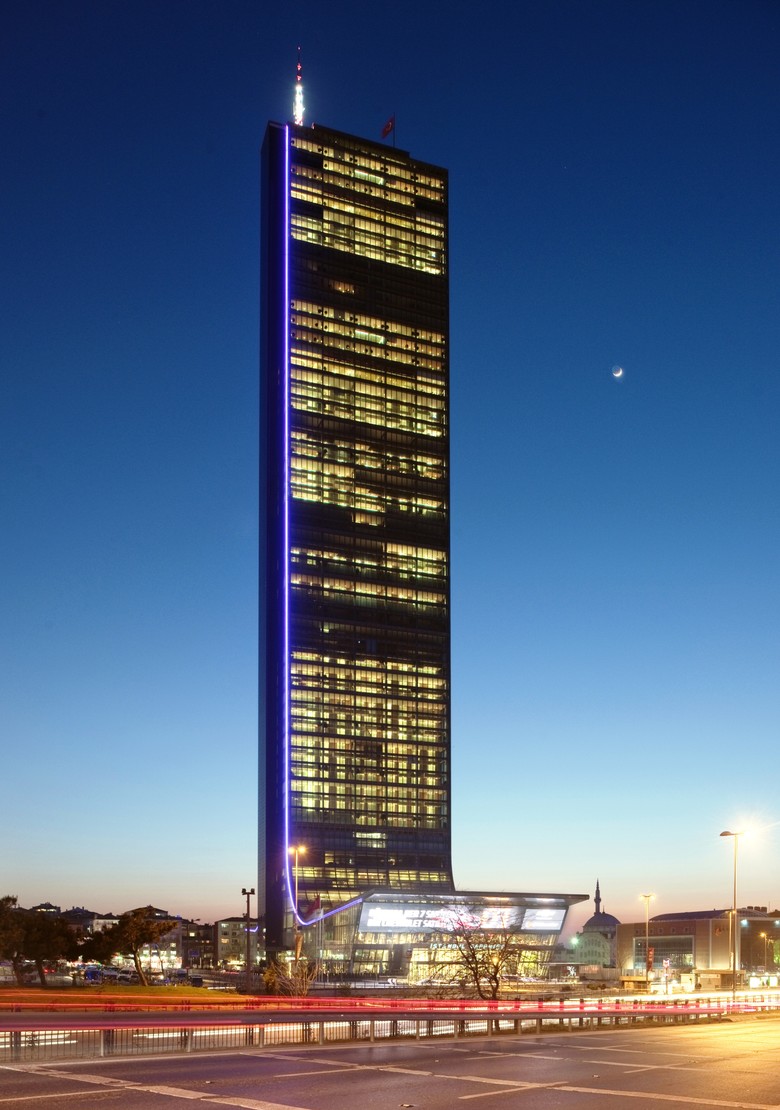 Istanbul Sapphire, a residential-led, leisure and shopping center project, which is located in the "business administration" center of the city, is the highest structure in Istanbul.   The building rises in agreement with the surrounding high-rises and still in human scale by means of nature-friendly facilities like vertical gardens.  In addition to the comfort provided by the modern technology, Istanbul Sapphire has the infrastructure and the location that will ensure easy transportation. Owing to the metro connection and the 6 underground car-park levels, the transportation and the parking problems are solved. The building façade consists of two independent shells. The interiors are protected from adverse weather conditions and noise on account of the outer shell. This transparent shell also serves as a buffer zone between the indoor area and the outside, and has a positive effect on structural solutions. In different levels of the building, there are 187 residences of different sizes; the building is planned as 4 separate housing zones, and in the 4 common areas between the sections; there are various social areas and naturally ventilated indoor gardens for the residents of the building: these buffer zones also house the maintenance and support facilities and the mechanical systems of the building. Environmental friendly systems of the construction grant low energy consumption up to 30%. Furthermore, the green areas, namely the indoor gardens at various levels, offer a natural and a warm setting for those living at higher levels as well. Besides the inner gardens, every ninth floor recreation areas, such as a mini golf course with a great Bosporus view or a swimming pool overlooking the woods of Istanbul. Viewed from the outside, the building gets slightly thinner as it rises upward. As of the fourth level, it expands downwards and the glass covering the surface of the building earns a sort curve and then extends horizontally as the skirt of the building, which covers the cafés, bars, restaurants, cinemas and stores, maintaining the integrity of the retail and social zone. This area, designed especially for high-quality brand shopping, is perceived as a multi-layered, dynamic, large single space. This wide space benefits natural light to the maximum extent, and in addition to the stores in this broad area, as of the basement, four levels of shopping zone have been planned in the ground floors. A part of the 6-storey car park has been reserved as storage areas for the residents and for other storage services. The residents benefit the 360 degree spectacle panoramas at the highest point of the city. The 261-meter hi-technology Tower possesses a smart cityscape, being the highest structure of the city, the very top floor is reserved as an observation deck for public use.