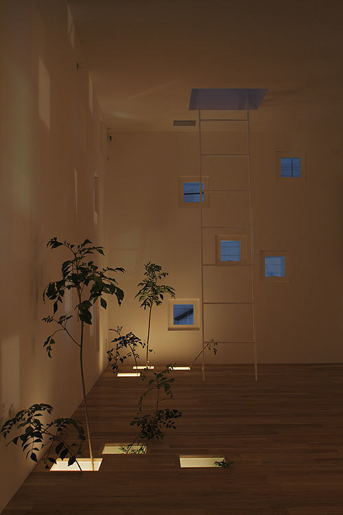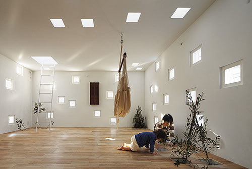 When the father comes home, he shakes the tree downstairs in the signal of coming home. Children will gladly run into the floor opening.The floor opening is netted with safety measures to prevent children from falling.
