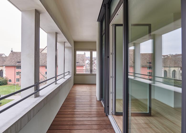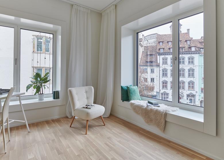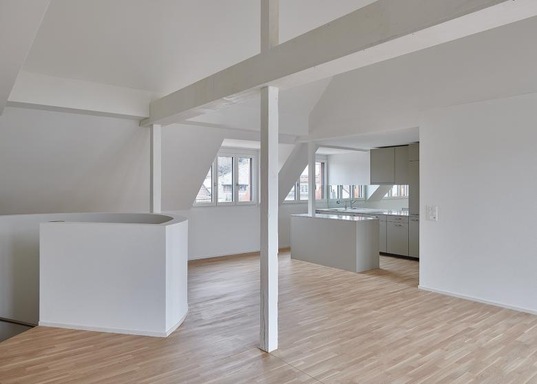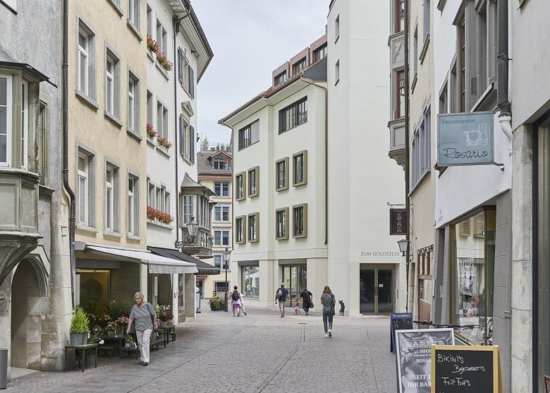 Im Sinne einer nachhaltigen Vermietbarkeit realisiert das Projekt einen Nutzungsmix mit Schwergewicht Wohnen. Die Vergrösserung des bestehenden Innenhofes ermöglicht neu die Belichtung der Wohnungen in den Obergeschossen, führt aber auch Licht über das Erdgeschoss bis ins erste Untergeschoss. Gleichzeitig gewinnen die Bewohner eine lärmgeschützte Oase inmitten der Altstadt.