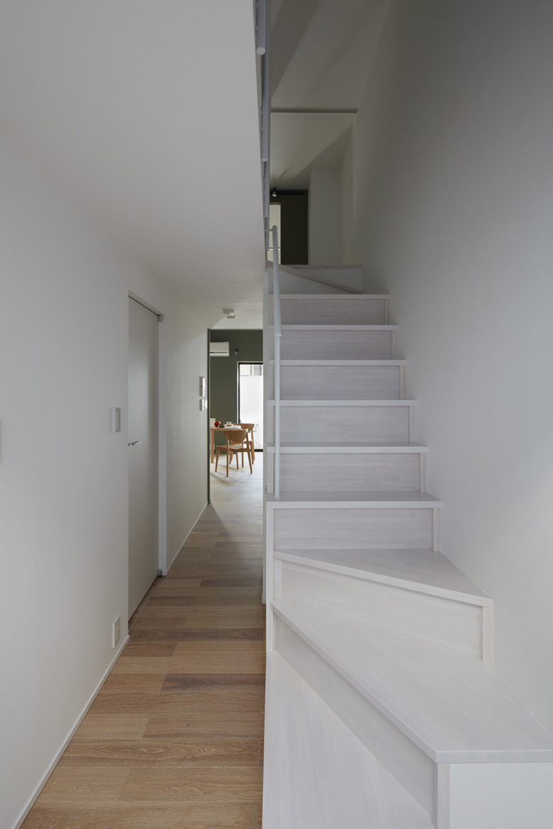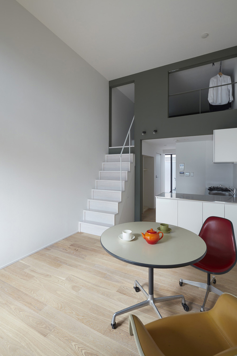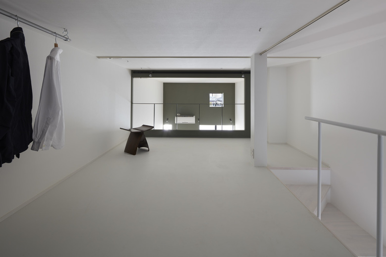 鉄筋コンクリート3階建てが可能な敷地だが、賃貸収支のバランスからそれを選択していない。賃貸情報的な分類は「ロフト付き木造2階建てアパート」だが、上がったところで真っ直ぐ立てる室内階段のつくりとし、ロフトの窮屈さを減らして実用性を高め、擬似的なメゾネットによる木造4階建てアパートのような空間を目指している。