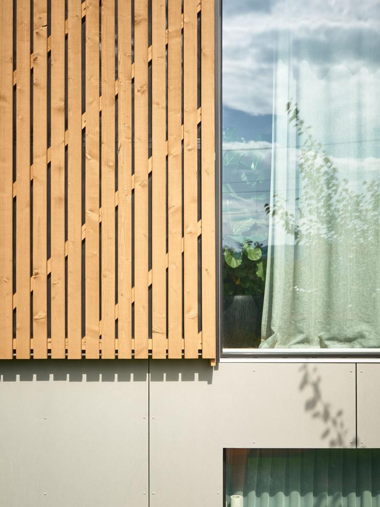 In einer Obstbaum bestückten Wiese einer grösseren Liegenschaft konnte das Wohnhaus so gestaltet und materialisiert werden, dass es den Ausdruck einer grossen Gartenlaube suggeriert. Im Innern beginnen die Geschossbeziehungen bereits im höhenversetzten Eingangsbereich mit der Treppenanlage, der Galerie und dem Luftraum zu spielen. Dadurch sind Oben und Unten, Vorne und Hinten sofort wahrnehmbar und ständig präsent.
