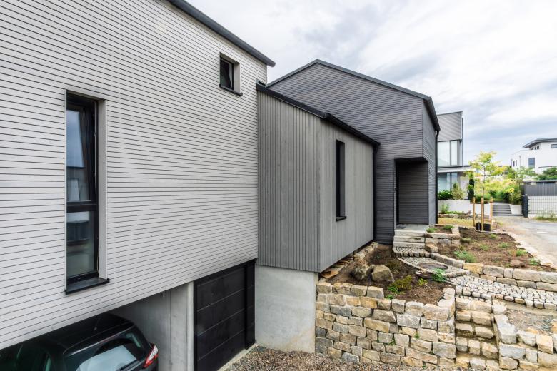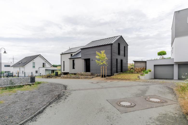 Traurigerweise ist dies das einzige aus Holz errichtete Haus im gesamten Neubaugebiet.