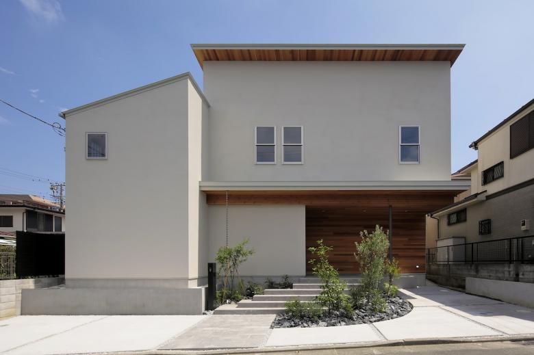 駅前の利便性の高い高層マンション暮らしだったご家族は、毎年夏休みに奥様の実家のある沖縄で過ごすことを恒例としておりプールで泳ぐ夏休みを楽しみにしていた。自宅を新しく建てるにあたりこの毎年恒例の夏の楽しみをもっと長く自宅で楽しめるように、沖縄のリゾート施設のように夏を過ごせる家が強いご要望でした。それは何よりも子供達と過ごす夏、一緒に取る食事など毎年季節ごと行事ごとに思い出が蓄積していく、そんな家にしたいというご夫婦のお考えから自宅で過ごす子供達との時間が楽しく豊かなものになることが第一優先事項となった。