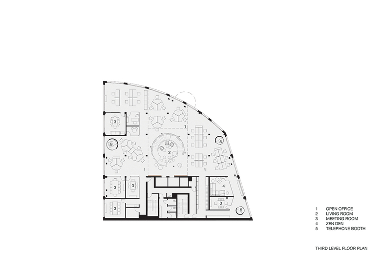 The LEED Platinum building in an expression of the center’s vision for a connected, open, and democratic world. This circular volume carries an open stair upward through the building’s original three floors to a fourth-floor addition, linking floors and connecting a range of workspaces. Throughout the building, the circular volume acts as an organizing and integrating principle, linking the various floors and functions while maintaining the separations needed to meet code and maintain privacy.