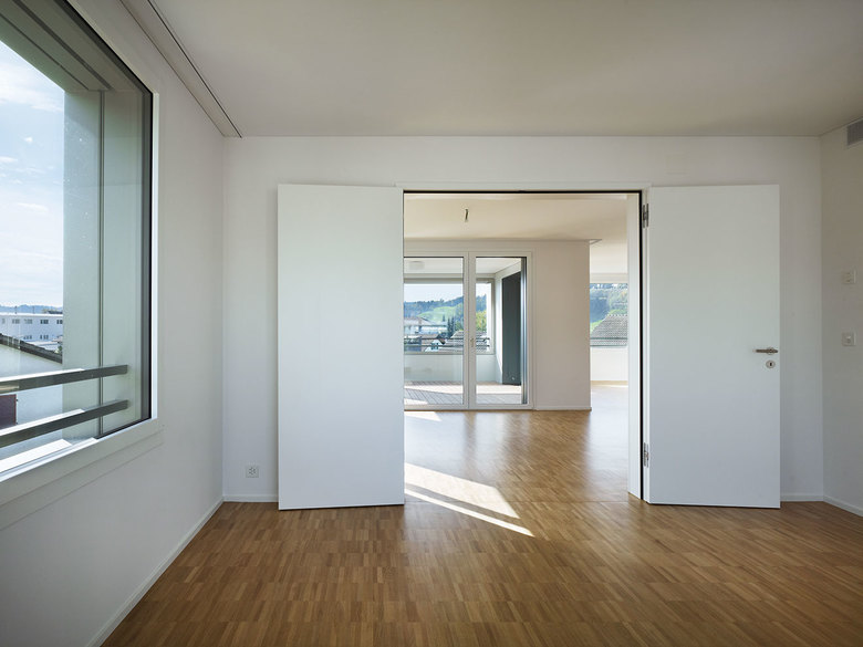 Swisswoodhouse wurde als flexibles, 2000-Watt-fähiges Mehrfamilienhaussystem in Holz entwickelt. In Nebikon, auf einer kleinen Halbinsel zwischen zwei Bachläufen wird das erste swisswoodhouse mit 18 Wohnungen realisiert. Die 2.5- bis 5.5-Zimmer-Wohnngen spiegeln mit ihren unterschiedlichsten Typologien die Möglichkeiten von swisswoodhouse. Dem 60m langen Bau wird eine vertikale Holzschalung in leicht changierendem dunkelgrau entgegengesetzt. Der Holzbau wird inklusive Holzfassade komplett im Werk gefertigt und in nur 3 Wochen aufgerichtet.
