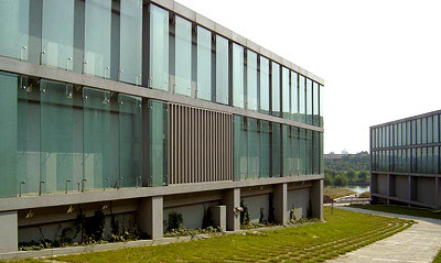 The International Club was originated as a community center in the Hi-Technology Industry Park in Nanjing, in order to serve the experts, the investors and visitors who will work and stay there for a short time. This multi-use project has several proposals of function, including a hotel with 60 rooms, a conference center, restaurants, a bath center and a swimming pool as well as KTV resorts. Altogether it will be a building with 15.000 square meter floor area; a huge volume for the original natural site. In order to keep the natural feature of the site, and present a symbolic vision for the New District, which is almost a total blank area on the northern suburb of Nanjing, several possible schemes were studied, and a final decision was made to embed the building along the hills on both sides in a zigzag shape. An important transformation was made in the midterm of design, which converted the twin solid strips into voids: one for a cascaded waterway and the other for bamboo planted courtyards. The various functional rooms will be deployed along these two garden canyons. The ground surface on the roof is kept for grass pavement and gives as few impacts as possible to the landscape around it. Some dinning rooms and conference rooms are suspended in the void strips, enjoying the scenery provided by the miracle space. Several corridors connect the ground field, and guarantee the continuity of the activities. Mechanical rooms wrapped in metal mesh are in between the strips. They can be the elements for this landscape building, and leave the floor area more adaptive to the future usage. In the evening the light along the glass walls will give an impressive sign of the new Hi-Tech District.