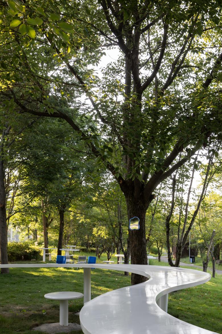 Architectural and interior design are unified under the theme of "fluidity." The external façade features curved floor-to-ceiling windows and folded walls, echoing the ripples of the stream while reducing the building's visual impact on the natural environment. The layout unfolds in a semi-enclosed manner around the central "Drifter Tower," with multiple openings guiding airflow and sightlines to enhance spatial transparency. Indoors, a language of frames and curves defines the space, with ceilings adopting continuous arched forms and embedded lighting strips to evoke the shimmering effect of water reflections.