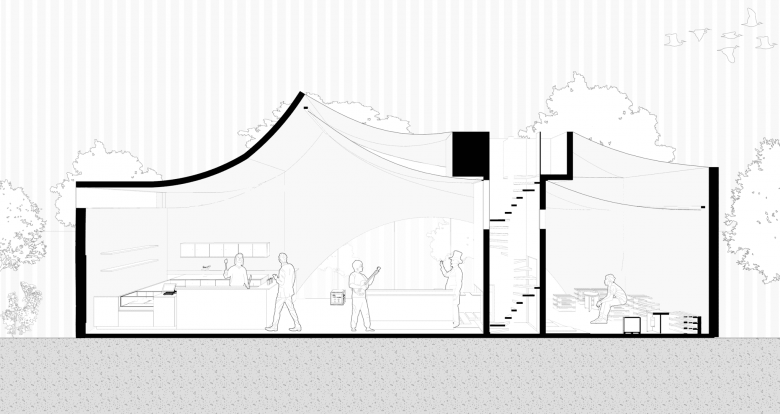 The design concept is rooted in the geographical and cultural imagery of the "river valley basin," with the "drifter" as its core spiritual embodiment. We sought to translate the undulating mountains of Shenxianju, the meandering streams, the layered swaying of bamboo forests, and the temporal shifts brought by climate and bird migrations into narrative threads for space and experience. The coffee shop not only offers tea, coffee, beverages, and local light meals but also aims to create a "water-inspired lifestyle destination" that blends cultural immersion with natural awareness. It invites urban dwellers to unwind their senses, embrace fluidity, and become "drifters" in every present moment—living as freely as flowing water.As I. M. Pei once said, "Life is architecture, and architecture is the mirror of life." Centered on the theme of "flow," we created this riverside retreat where visitors can gaze at distant mountain views and listen to the gentle sounds of water, hoping to inspire everyone to truly "ride the wave of life."