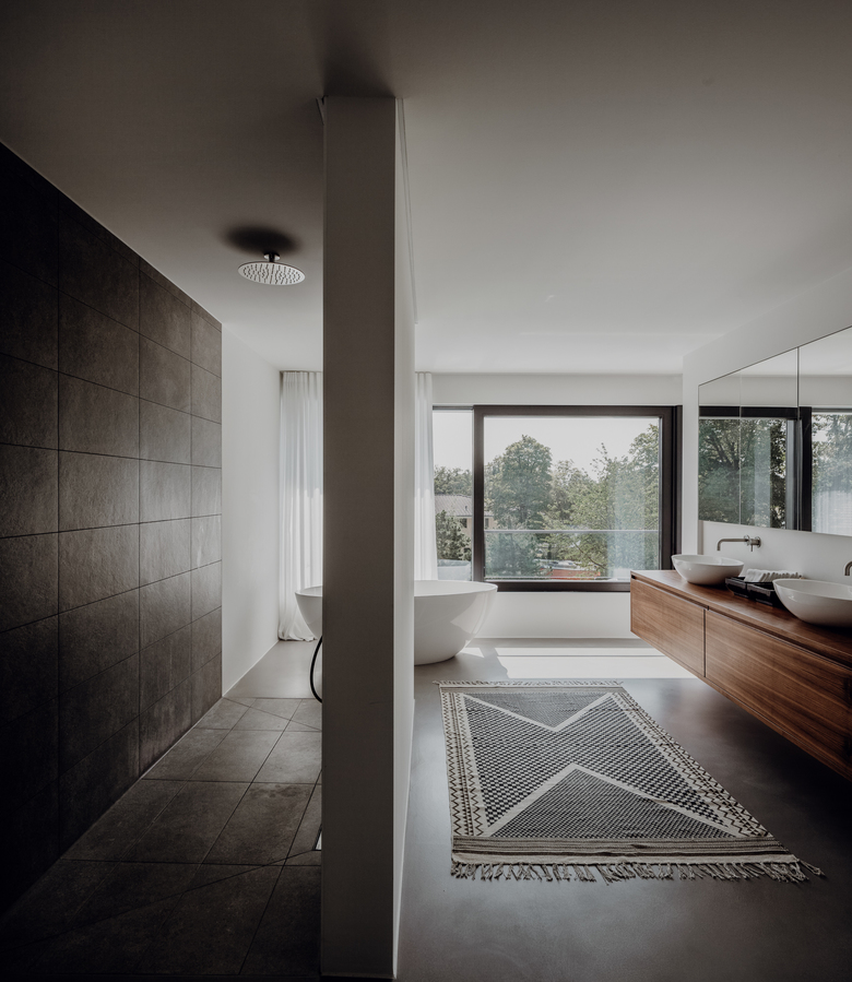 Im auslaufenden parkähnlichen Garten einer alten Villa oberhalb des Starnberger Sees ist mit dem Entwurf der Villa von Osee ein moderner und dennoch harmonischer Kontrapunkt gelungen. Ein maßgeschneidertes Zuhause für eine Familie mit zwei erwachsenen Söhnen und nicht zu vergessen ihrem Hund.