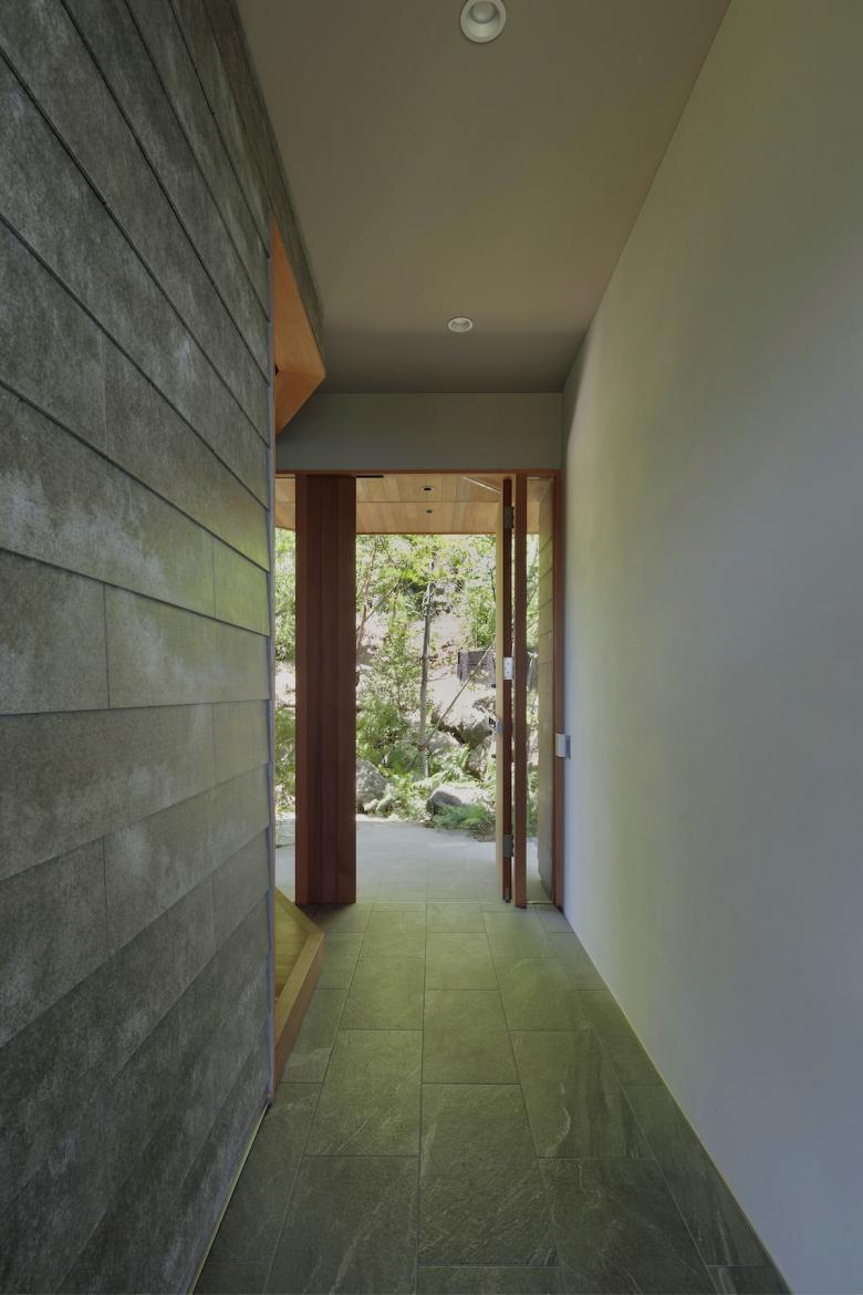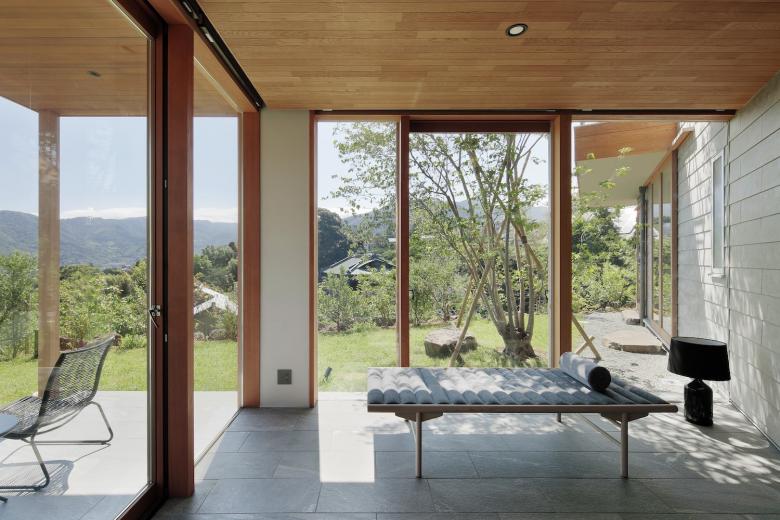 敷地の持つ解放感を建物の中で体験するシークエンスの遠近感によってコントロールし、風景と一体となりながらも流れる時間をゆったりと感じられるものになっている。