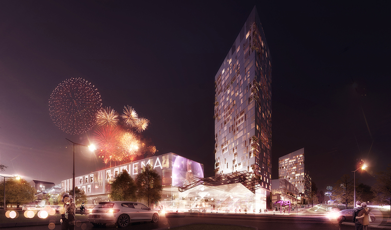 Program: Shops, housing, offices, leisure activities, movie theatre and outdoor activities