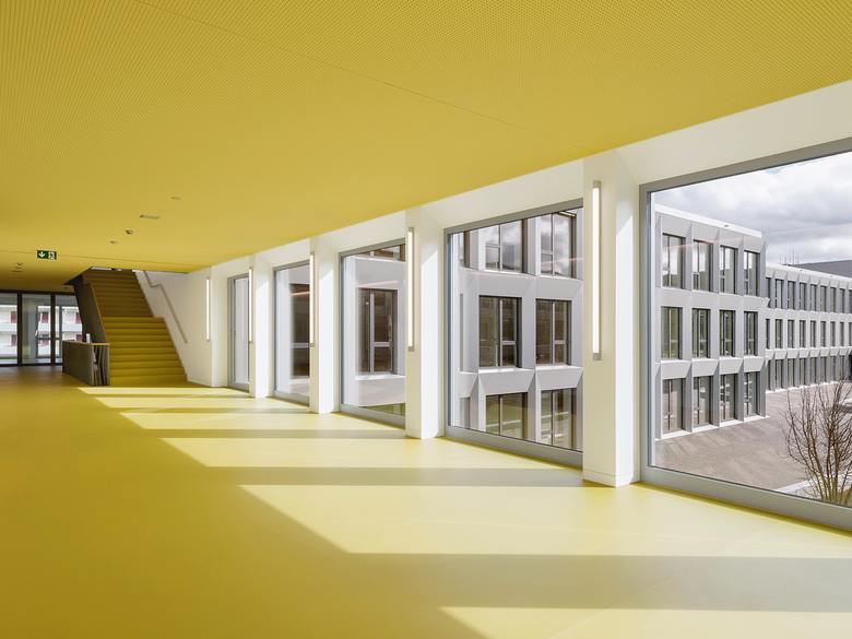 Die von spannenden Raumfolgen und abwechslungsreichen Blickbeziehungen geprägte ringförmige Erschliessung bietet lichtdurchflutete Begegnungs- und Aufenthaltsbereiche.