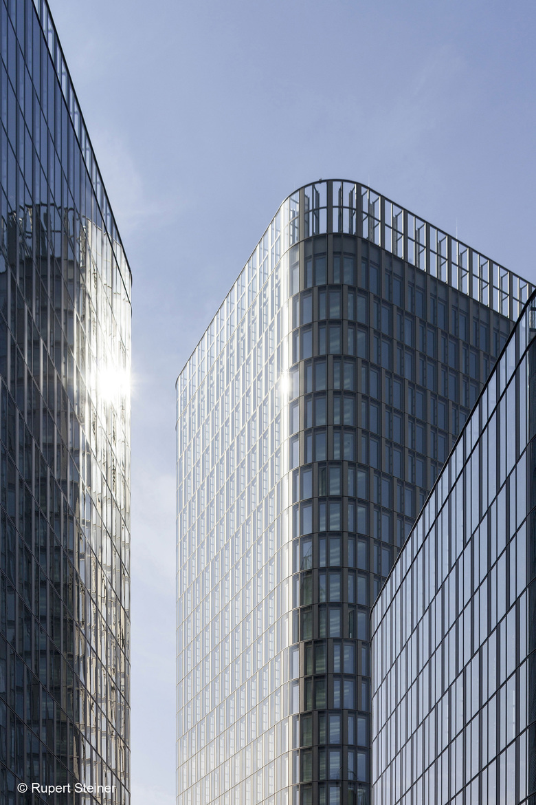 The most abiding impression is created through the sophisticated, architectural concept of the facades. Situated on the corners of a triangular plot, the individual towers are distinguished by subtly different facades. A vibrant feel is created through the play with colours and effects. Shades of gold, platinum and bronze colours lend the facades a unique high-quality appearance. At any time of the day or night, the towers appear different from every angle.