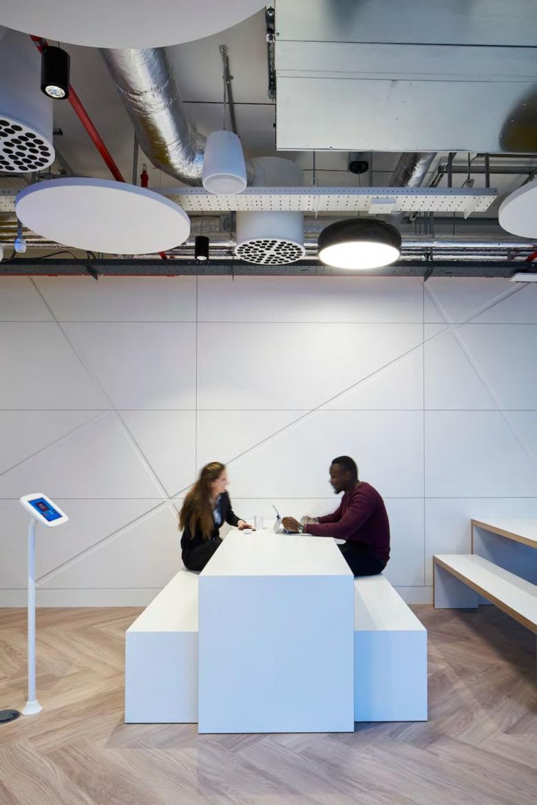 Für eine erfolgreiche Umsetzung der ambitionierten Pläne arbeitete Land Securities mit einer der führenden Beratungsfirmen für Raumgestaltung und Koordinierung, KKS Strategy LLP, zusammen. Gemeinsam konzipierte man eine neue, lichtdurchflutete Umgebung in neutralen Farbtönen. Zusätzlich entfernte man die Zwischendecke und legte die Deckenkonstruktion sowie technische Einbauten frei. Dadurch wurde eine vergrößerte Raumhöhe erreicht, von der die neue Bürolandschaft profitieren sollte. Die erste Etage des Gebäudes ist in zwei Bereiche aufgeteilt, die durch eine Brücke miteinander verbunden sind. Victoria Street 100 ist der kleinere von beiden und wurde damit als Kundenbereich festgelegt, während Victoria Street 80 den gesamten Arbeitsbereich mit allgemeinen Supportfunktionen einschließlich eines zentralen Knotenpunkts für Zusammenarbeit beherbergt.