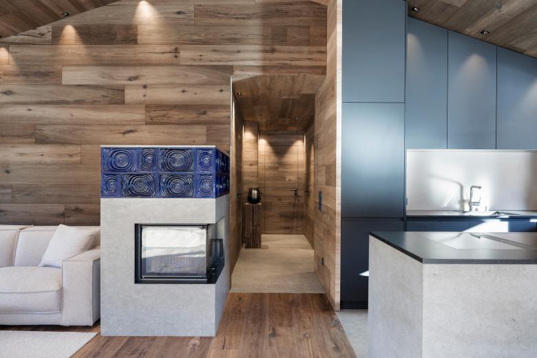 In terms of urban planning, the design of the buildings is inspired by the typical so-called “Paarhof”, a form of mountain farm common in the entire Alpine region, in which the residential building and farm buildings are built in close proximity to one another and their gabled roofs are mostly oriented towards the valley. Due to the hillside location of the homes, they only seem like two-storey buildings looking downhill, as the cellars and the shared garage were built underground into the slope. On the lower floor, the two structures are connected to each other, the separate upper floors have gabled roofs that are oriented towards the south and slightly turned towards each other, which underlines the typical character of the local farm.