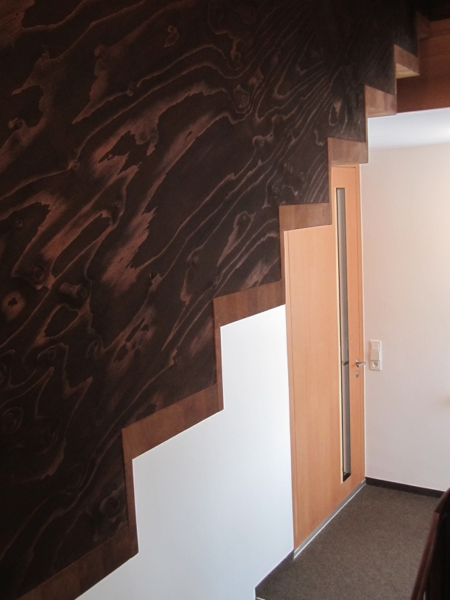 Im 2. Obergeschoß sind Schlafräume und Bäder untergebracht, das DG bleibt unausgebaut, bekam 2 Dachflächenfenster und wurde ebenfalls durch die neue Stiegenskulptur erschlossen.