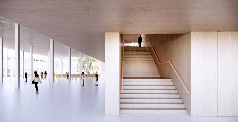 Das neue Konzerthaus wirkt offen und einladend. Alle wesentlichen Funktionen des Vorderhauses werden im Erdgeschoss angeordnet, hierdurch gewinnt der Verfasser für das neue Konzerthaus Lesbarkeit, Orientierung und letztlich auch Identität.