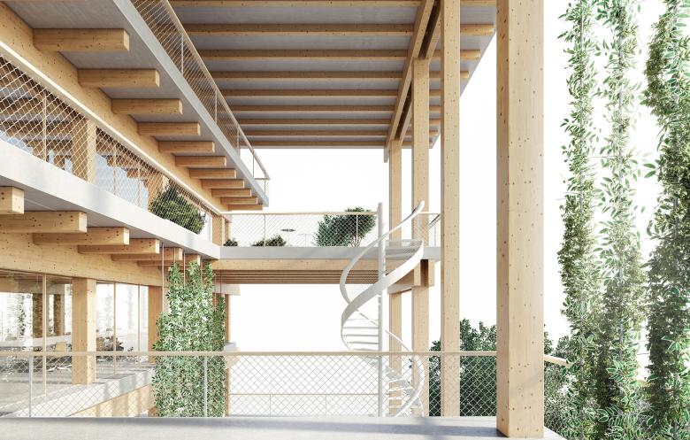 Transparenz, Offenheit und Kommunikation kennzeichnen unseren Vorschlag für das MSF Camp de Base in Genf, ein achtstöckiges Gebäude aus Holz. Das gewählte Material entspricht den Werten von MSF: warm, nachhaltig und zugänglich; zudem besteht die Möglichkeit, das Holz aus regionalen Wäldern zu gewinnen und vor Ort zu verarbeiten.