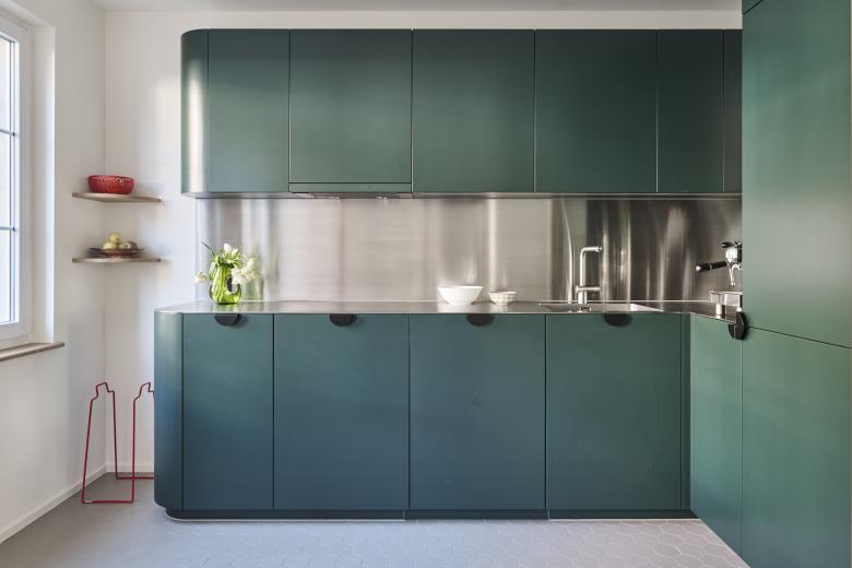 Im gesamten Haus standen die Auseinandersetzung mit dem Bestand sowie die Frage nach einer angemessenen Weiterentwicklung im Vordergrund. Materialien und Details wurden mit Sorgfalt gewählt und präzise auf die historische Substanz abgestimmt. Wo neue Eingriffe sichtbar bleiben, sind sie bewusst differenziert – etwa dort, wo eine durch den Wanddurchbruch im Erdgeschoss entstandene Lücke im Parkett mit Zement ergänzt wurde: eine ruhige, aber deutliche Spur der Transformation. So bleibt der Charakter des Hauses lesbar, während seine räumlichen und funktionalen Qualitäten zeitgemäss erweitert werden.