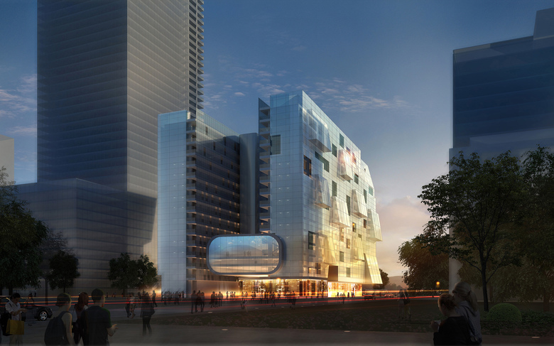 Located in the center of Shenzhen Huaqiangbei district, this project called for the renovation of an existing building into a 200 room boutique hotel. Studio Link-Arc proposed taking the modernist-object building and making it responsive to its site through a detailed context analysis.